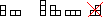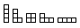 Figure 2. À gauche, les deux profils possibles avec deux grains. Puis, les trois profils possibles avec trois grains. À droite, une construction possible avec trois grains que nous ne considérons pas comme une profil car les colonnes ne sont pas de hauteurs décroissantes de gauche à droite.